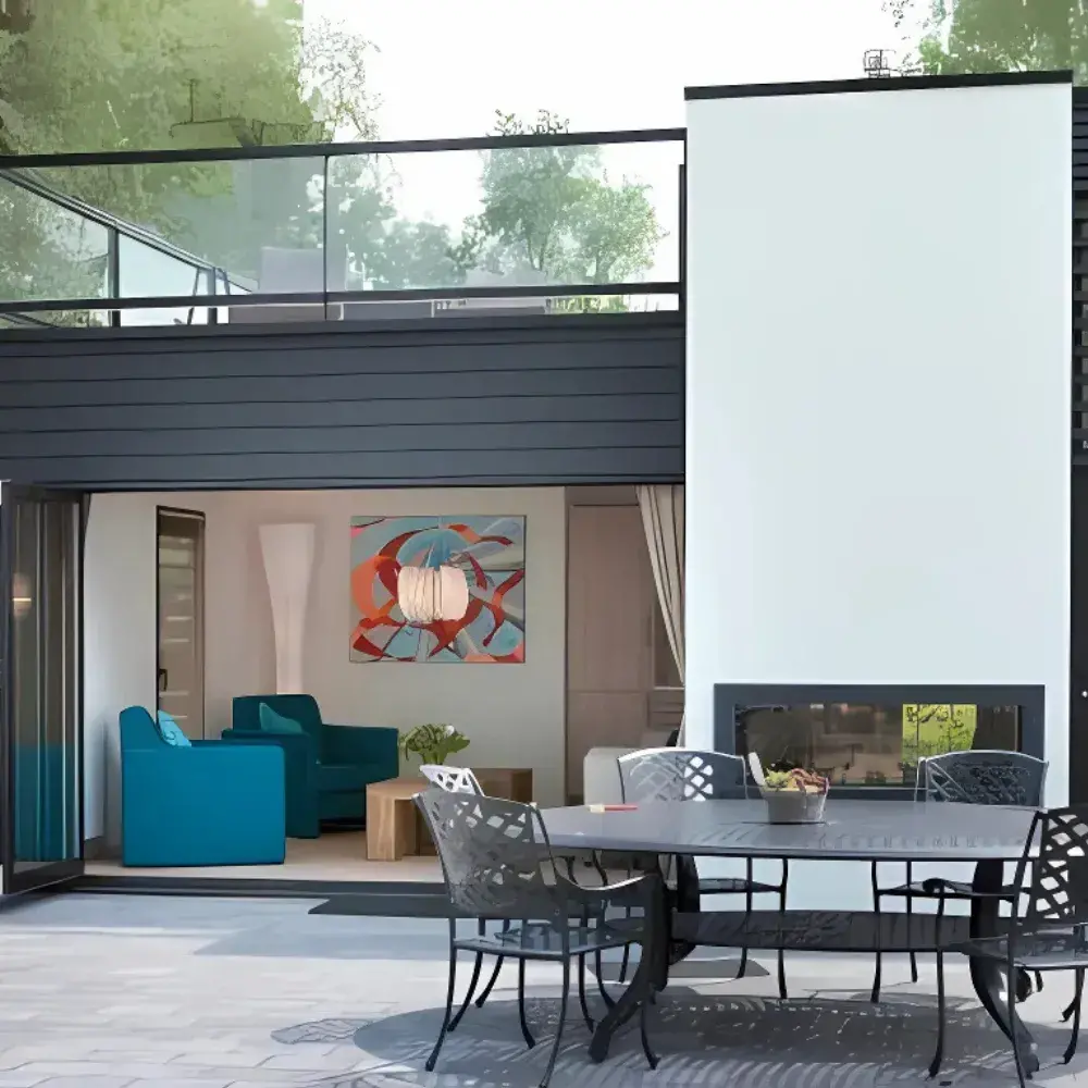 La Chimenea de Gas KOTO de Bosch Marín destaca por su diseño moderno y funcional, ofreciendo una visión panorámica del fuego que aporta calidez y elegancia a cualquier espacio.