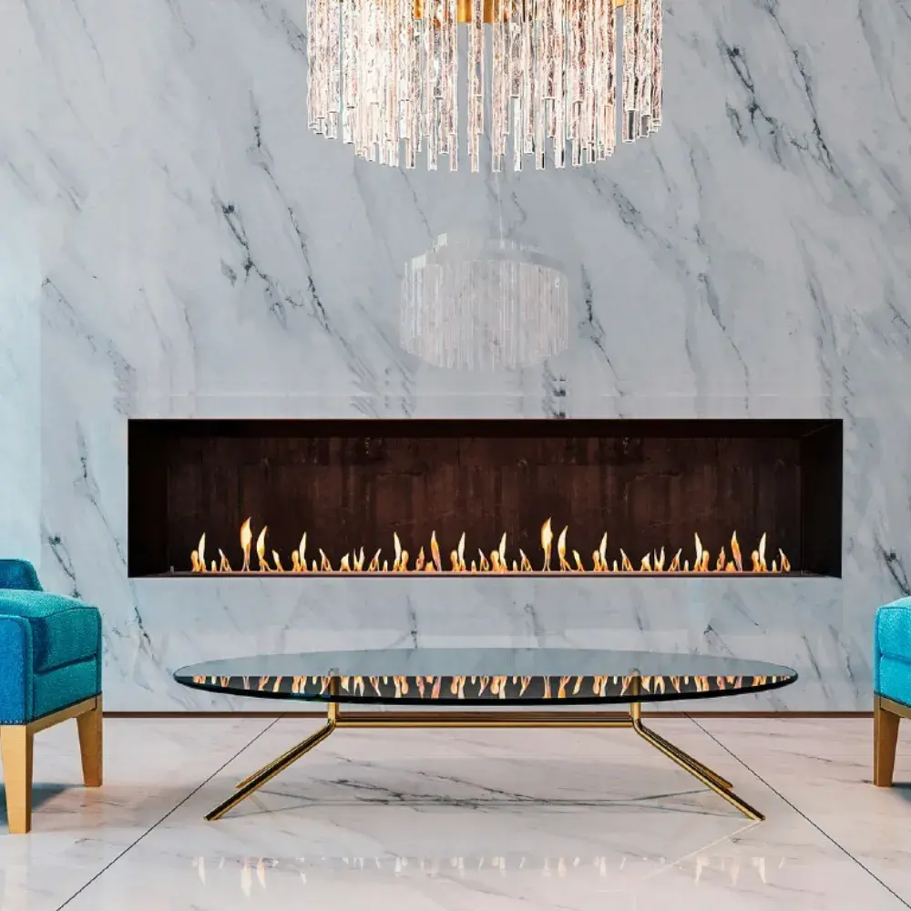 La Chimenea de Gas PANO 2000 Frontal de Bosch Marín es una chimenea de gran formato que proporciona una impresionante visión panorámica del fuego. Su diseño moderno y su sistema de combustión eficiente garantizan una calefacción uniforme y un ambiente sofisticado.