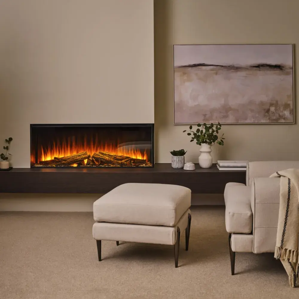 La chimenea eléctrica New Forest 1200 proporciona calefacción eficiente con un diseño elegante, creando un ambiente cálido y moderno en cualquier espacio interior.