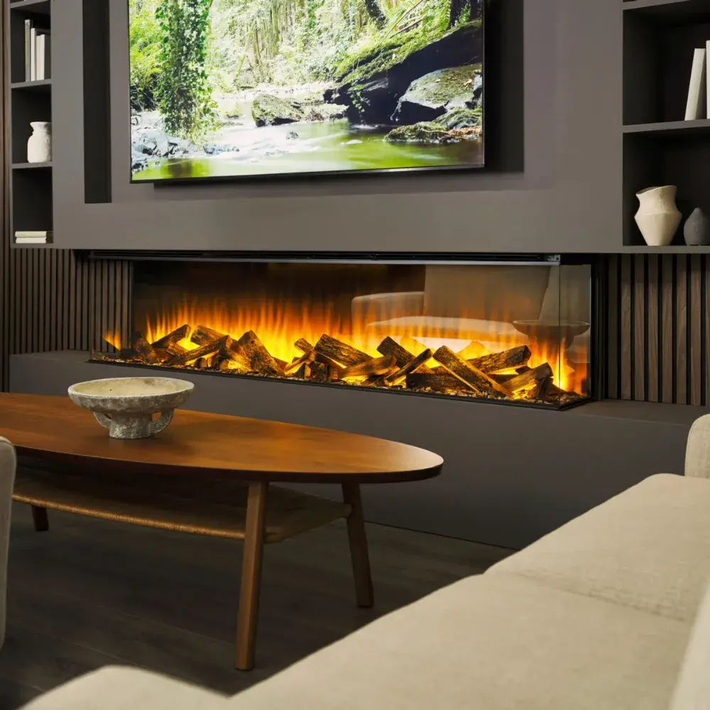 La chimenea eléctrica New Forest 1900 proporciona calefacción eficiente y un diseño elegante para crear un ambiente acogedor y moderno en cualquier espacio interior.