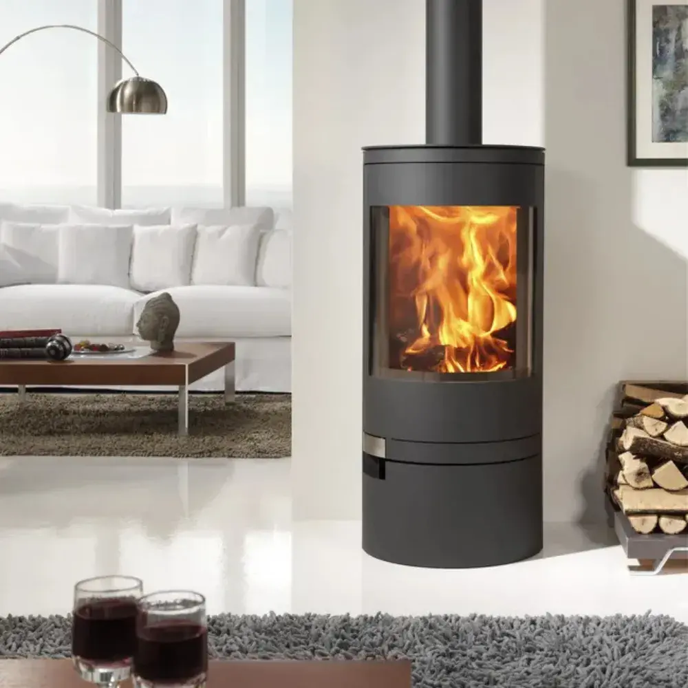 La estufa de leña PANADERO Akita Eco, con una potencia de 6,3 kW, ofrece una calefacción eficiente y sostenible para su hogar. Su diseño moderno y compacto, junto con características avanzadas como doble cierre y sistema de cristal limpio, garantizan confort y seguridad.