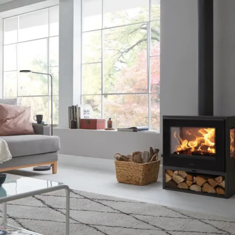 La estufa de leña PANADERO Java, con una potencia de 5,9 kW, es ideal para calentar superficies de hasta 100 m². Fabricada en acero con acabado en gris antracita, combina eficiencia energética y diseño elegante para su hogar.