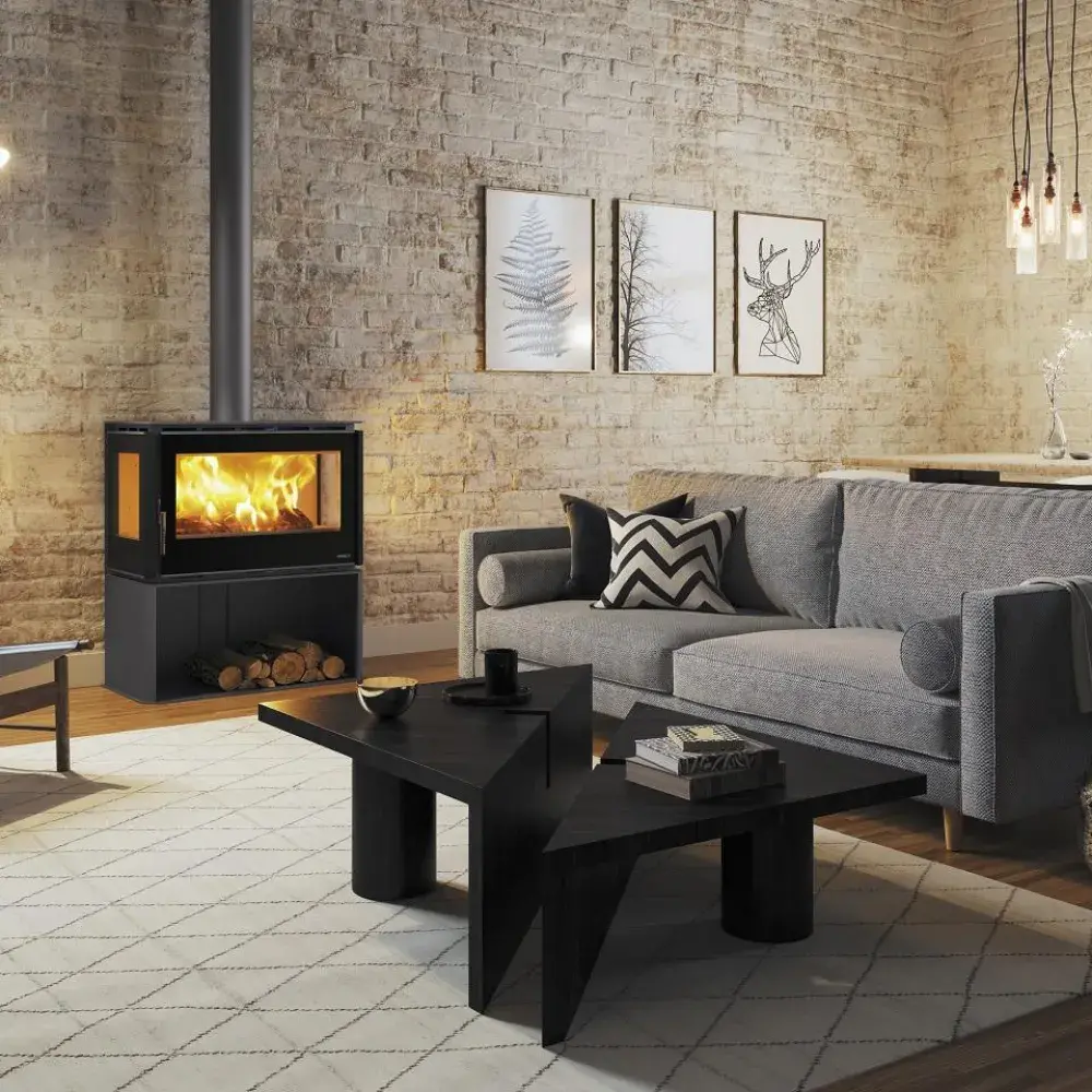 La Estufa RA-85 de Carbel es una estufa de leña elegante y compacta, ideal para disfrutar de una amplia visión del fuego y calentar cualquier espacio con eficiencia y estilo.