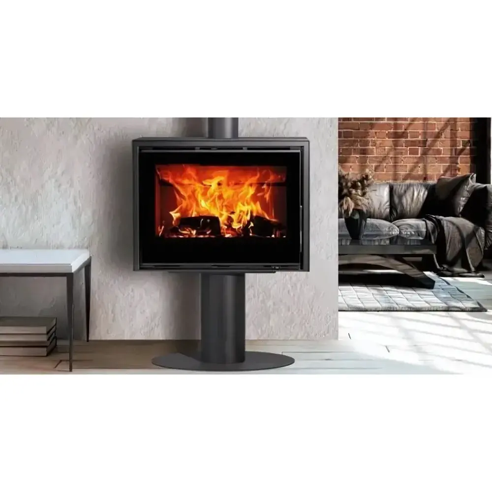 La Carbel RI-70 ofrece calefacción potente y adaptable (6-15 kW) con un diseño versátil para instalación en pared, pedestal o leñera. Cuenta con dos ventiladores integrados con control automático, cámara de combustión personalizable en vermiculita o refractario Thermic y un rendimiento térmico elevado (81,6%), asegurando comodidad y eficiencia.